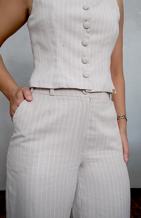 Além disso, você também vai aprender o passo a passo do corte da calça ao vivo junto com a professora e receberá os vídeos do passo a passo da costura e acabamentos.